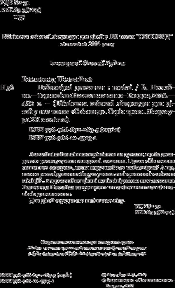 Звичайні київські школярі ніколи не думали, що їм доведеться розплутувати загадкові злочини. Проте хіба можна лишатися осторонь, коли поруч коїться неймовірне? А ще, коли в розслідуваннях беруть участь такі креативні капітани міліції?.. Надзвичайно цікаві повісті відомого письменника Всеволода Нестайка запрошують читачів опинитися віч-на-віч із дивовижним. Для дітей середнього шкільного віку.