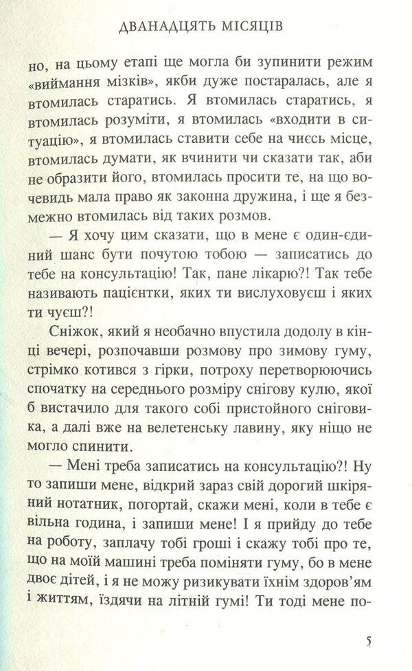 Чи вірити у казки? Коли надворі ХХІ століття, коли ти розлучена, коли сама із двома дітьми, коли 'зашиваєшся' на роботі, коли залякує колишній чоловік і на додачу до всього вляпалась у кримінальну історію? Звичайно, ні! А що натомість? Натомість не зраджувати своїм принципам, йти вперед попри труднощі і проблеми, вірити у себе, сміятись над собою, допомагати іншим. Роман 'Дванадцять місяців' описує рік із життя сучасної жінки. Авторка зачіпає серйозні теми, але роман читається легко завдяки захопливому сюжету.