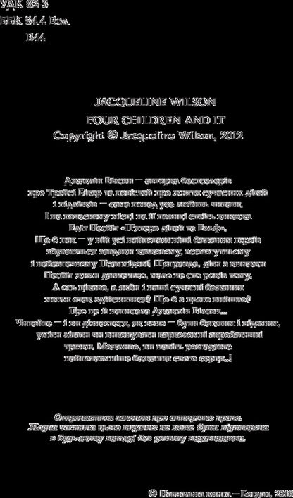 Джаклін Вілсон – авторка бестселерів про Трейсі Бікер та повістей про життя сучасних дітей і підлітків – сама понад усе любить читати. І на почесному місці на її полиці стоїть книжка Едіт Несбіт 'П’ятеро дітей та Ельф'. Ще б пак – у ній усі найпотаємніші бажання героїв збуваються завдяки казковому, всемогутньому і небезпечному Псаммідові! Щоправда, діти з книжки Несбіт жили давненько, мало не сто років тому.
