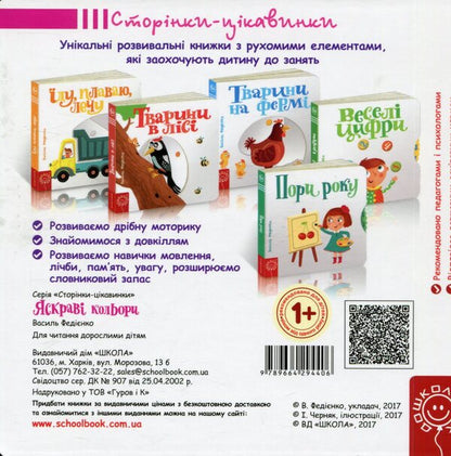 Унікальні розвивальні книжки з рухомими елементами заохочують дитину до знань, а також сприяють розвитку дрібної моторики, пам’яті та уваги, навичок мовлення та лічби.Разом із новими виданнями маленькі читачі познайомляться із кольорами та розширять словниковий запас.