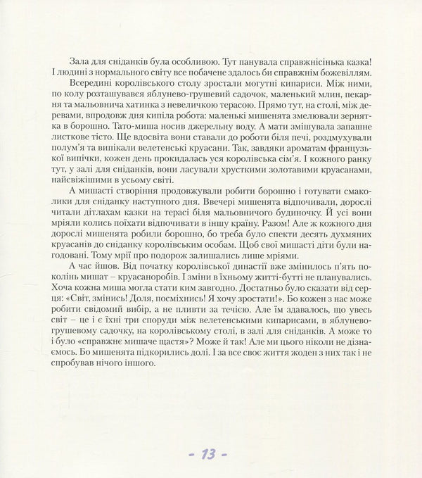 Головна думка цієї казки у тому, що пошук щастя у зовнішньому світі приводить до гіркого розчарування. Наш гармонійний, наповнений любов'ю дім починається всередині. Ми, немов квітка з гарними пелюстками, маємо кілька ролей в залежності від сімейного стану, професії та уподобань. Але всі пелюстки, тобто наші проявлення, виходять із серцевини. І чим вона міцніша, тим більше в нас можливостей для дій. Не варто усі сили спрямовувати на якусь одну пелюстку, бо тоді інші відпадуть. Так вже влаштовано у природі.Кожна ілюстрація у казці - це картина, намальована олійними фарбами на полотні відомою талановитою художницею Оксаною Тодоровою - письменницею, авторкою книжки. Її творчість об'єднує позитивне сприйняття світу, гармонія і любов.SPECIFICATIONS: