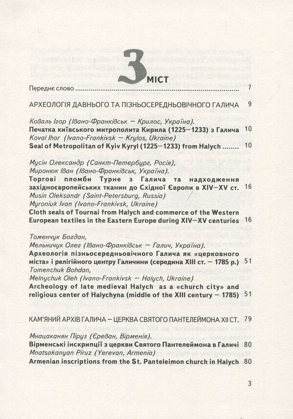 Шановний Читачу, перед Тобою другий випуск збірника наукових праць 'Галич', присвячений 650-й річниці надання містові магдебурського права. Успішність і важливість публікування спеціалізованих матеріалів з історії Галича, хай якої епохи, підтвердили поява й низка публічних презентацій першого випуску, який наче 'свіжі булочки', швидко розійшовся бібліотеками і науковими установами України та Європи від Парижа у Франції - на заході до Казані в Росії - на сході, від Рейк'явіка в Ісландії - на півночі, до Стамбула в Туреччині - на півдні.