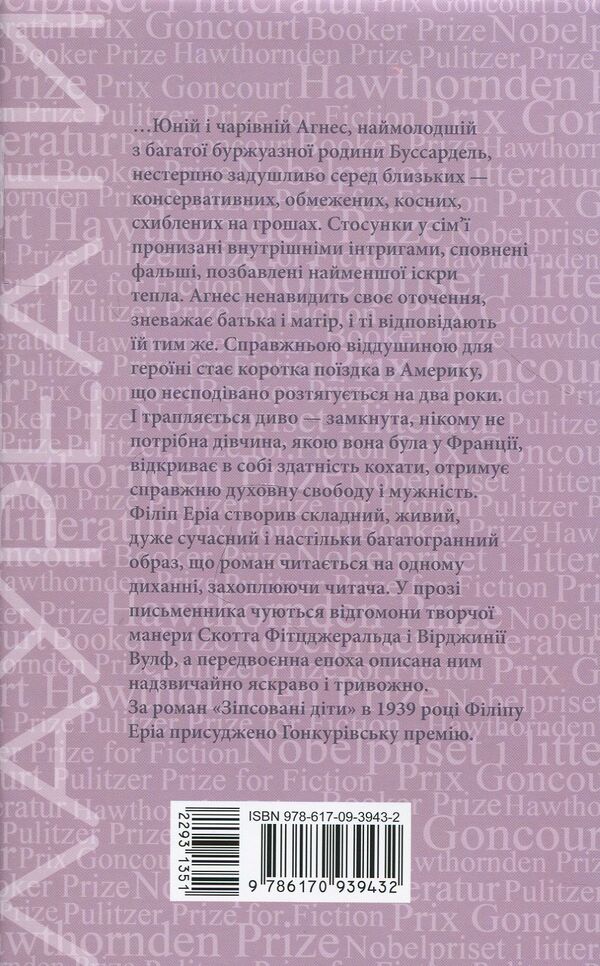 Автор створив складний, живий і багатогранний образ, роман читається на одному диханні, захоплює читача з перших сторінок. Франція високо оцінила 'Зіпсованих дітей' — у 1939 році Філіпу Еріа присуджено за цей роман Гонкурівську премію.SPECIFICATIONS: