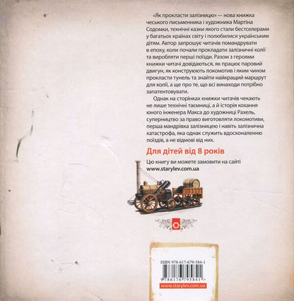 'Як прокласти залізницю' — нова книжка чеського письменника і художника Мартіна Содомки, технічні казки якого стали бестселерами у багатьох країнах світу і полюбилися українським дітям. Автор запрошує читачів помандрувати в епоху, коли почали прокладати залізничні колії та виробляти перші поїзди. Разом із героями книжки читачі довідаються, як працює паровий двигун, як конструюють локомотив і як прокласти тунель та знайти найкращий маршрут для колії, а ще про те, що всі винаходи потрібно запатентовувати.