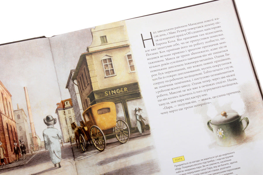 Однак на сторінках книжки читачів чекають не лише технічні таємниці, а й історія кохання юного інженера Макса до художниці Рахель, суперництво за право виготовляти локомотиви, перша мандрівка залізницею і навіть залізнична катастрофа, яка однак служить вдосконаленню поїздів, а не відмові від них.SPECIFICATIONS: