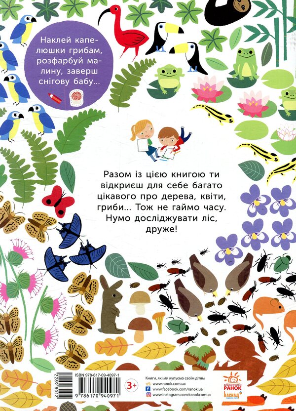 Разом із цією книгою ти відкриєш для себе багато цікавого про дерева, квіти, гриби…Тож не гаймо часу. Нумо досліджувати ліс, друже!