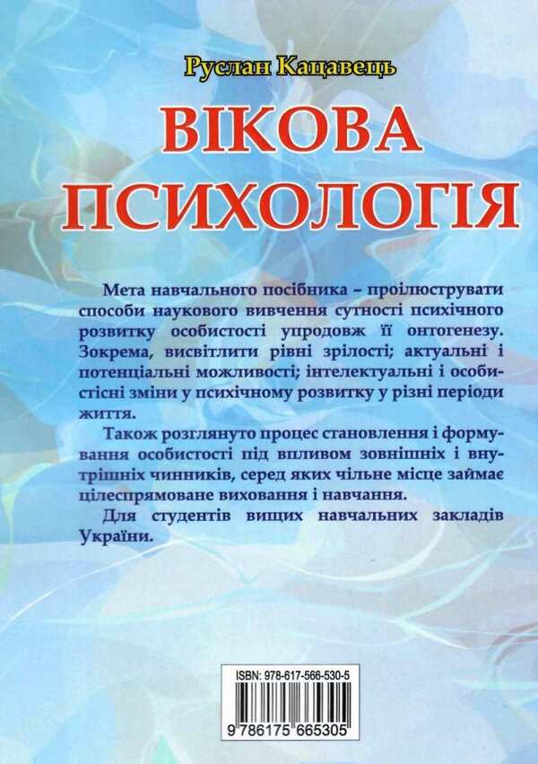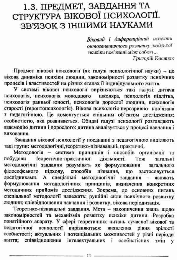 Мета навчального посібника – проілюструвати способи наукового вивчення сутності психічного розвитку особистості упродовж її онтогенезу. Зокрема, висвітлити рівні зрілості; актуальні і потенціальні можливості; інтелектуальні і особистісні зміни у психічному розвитку у різні періоди життя.