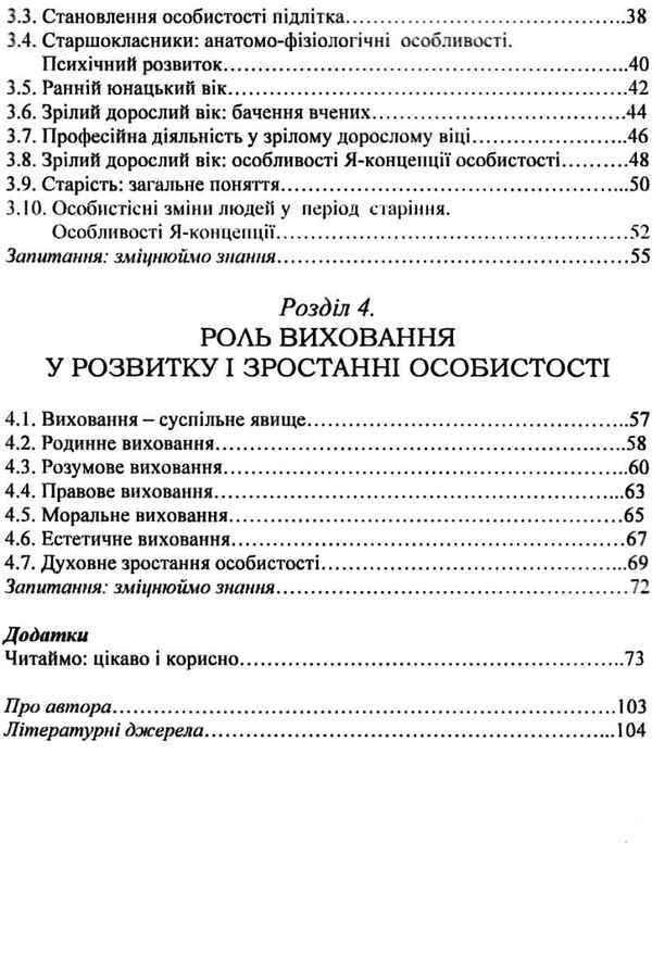 Також розглянуто процес становлення і формування особистості під впливом зовнішніх і внутрішніх чинників, серед яких чільне місце займає цілеспрямоване виховання і навчання.