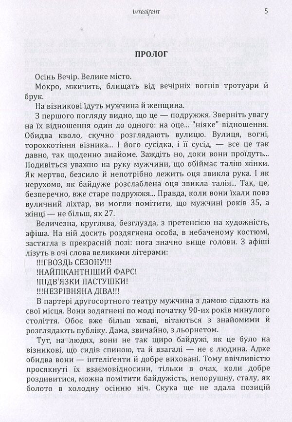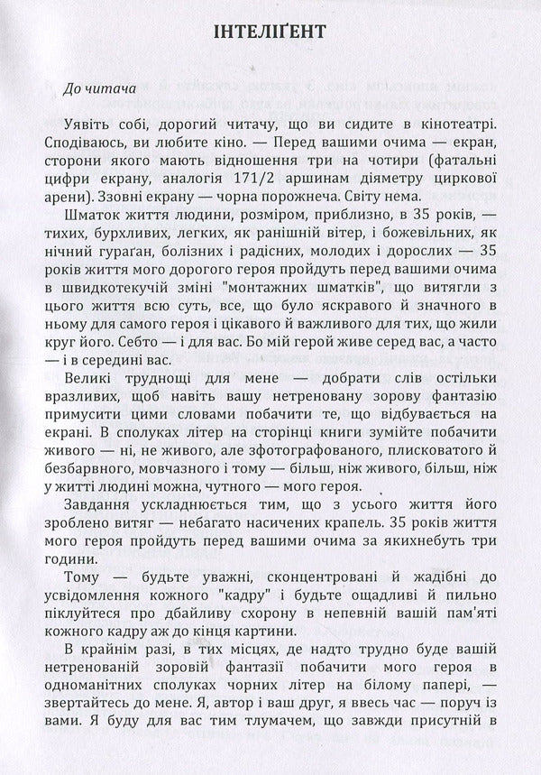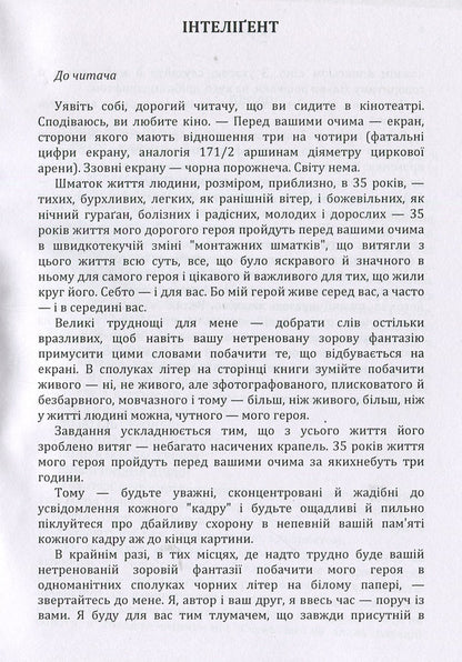 'Інтеліґент' - сатиричний роман, стилізований під опис ігрового кінофільму - вперше був надрукований у харківському часописі 'Нова ґенерація' № 1-3 (1927) 1-8 (1928). Автором зазначений Левон Лайн. У 1929 році роман був виданий окремою книгою у харківському ж видавництві 'Пролетарій', і на обкладинці було надруковане вже справжнє ім'я автора - Леонід Скрипник.