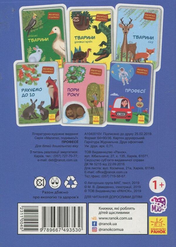 Серія 'Малятко, подивись!' — це перші книжки для найменшеньких на найрізноманітніші теми, що ознайомлюють малят із навколишнім світом. У кожній книжці 22 сторінки з яскравими малюнками і короткими підписами до них.