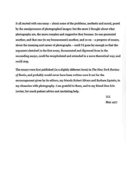 Susan Sontag's groundbreaking critique of photography asks forceful questions about the moral and aesthetic issues surrounding this art form. Photographs are everywhere, and the 'insatiability of the photographing eye' has profoundly altered our relationship with the world. Photographs have the power to shock, idealize or seduce, they create a sense of nostalgia and act as a memorial, and they can be used as evidence against us or to identify us. In these six incisive essays, Sontag examines the ways in which we use these omnipresent images to manufacture a sense of reality and authority in our lives.