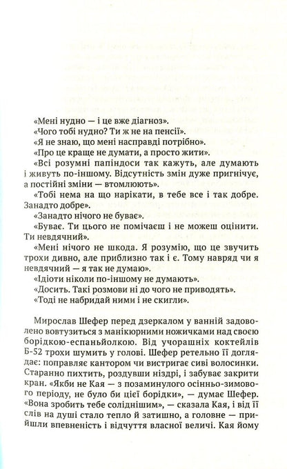 Сорокарічний Мирослав Шефер — блискучий аналітик і топ-менеджер іноземного холдингу в дохіпстерському Києві — живе на повну, рятуючись від кризи середнього віку в гулянках й алкоголі. Круті знайомства й тусовки. Друзі, в компанії з якими багато що можна собі дозволити. Коктейль ситуацій нічного життя. Полювання на життєвий досвід жінок, який він використовує як матеріал для своїх п’єс.