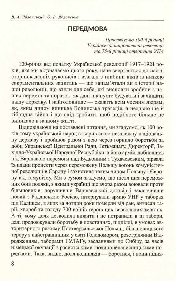 У книзі в публіцистичній формі на основі історичних джерел, офіційних видань, матеріалів друкованих та електронних ЗМІ й особистих даних викладено бачення Волинської трагедії в контексті 100-річчя Української революції та 75-річчя виникнення УПА.