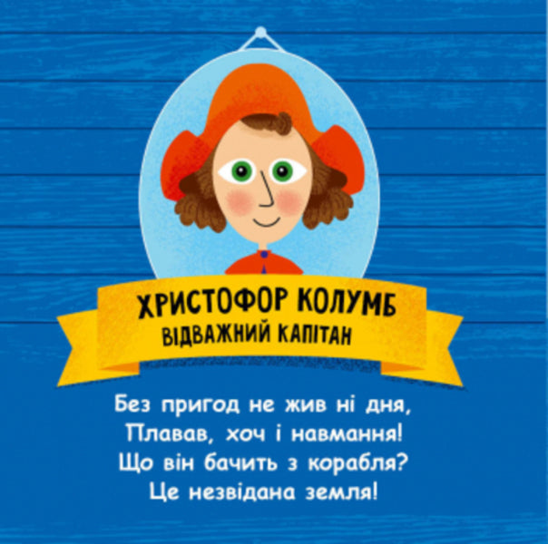 Ця серія книг познайомить маленьких першовідкривачів з відомими особистостями: дослідниками, винахідниками і дивовижними жінками. У книгах порозворотні ілюстрації поєднуються з віршами для найменших. Так дитина краще запам'ятає, хто підкорив Еверест, здійснив кругосвітню подорож, створив лампу або телескоп.