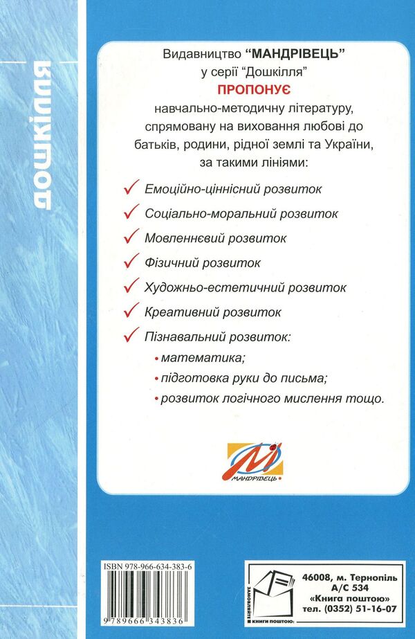Для педагогів, батьків, студентів педагогічних навчальних закладів, усіх тих, хто дбає про розвиток наймолодших.SPECIFICATIONS: