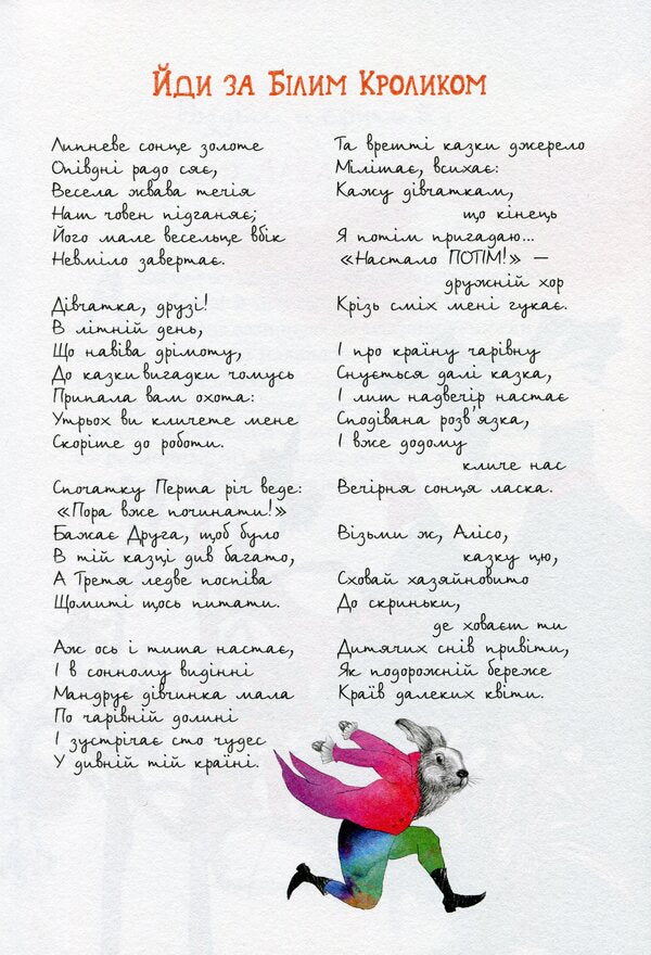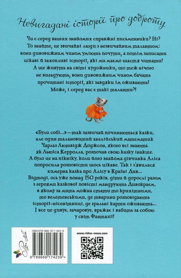 А було це на пікніку, коли його знайома дівчинка Аліса попросила розповісти щось цікаве. Так і з’явилася химерна казка про Алісу в Країні Див… Відтоді, ось уже понад 150 років, діти й дорослі разом з героями казкової повісті мандрують Дивокраєм, в якому за мить можна стати то крихітними, то велетенськими, де тварини розповідають історії-нісенітниці, де гральні карти оживають… І все це дивує, зачаровує, вражає і вабить за собою у світ Фантазії!SPECIFICATIONS: